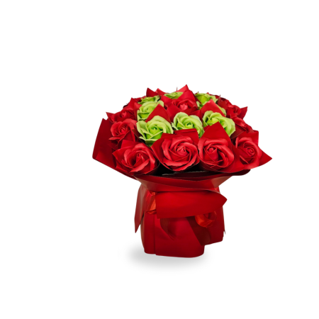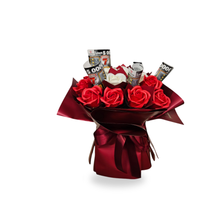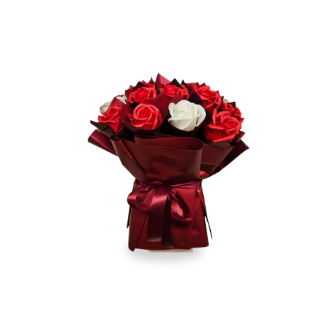 Prabangi muilo rožių puokštė "Raudona - balta" su loterijos bilietais (4 vnt.)