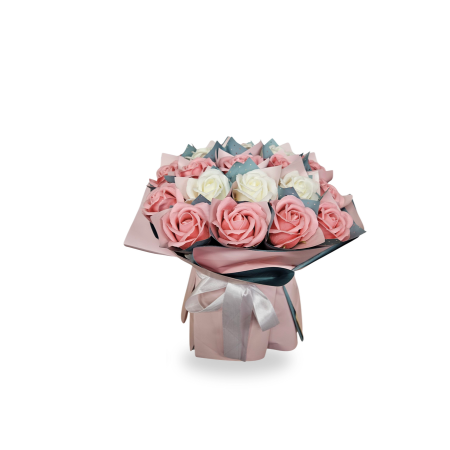 Muilo rožių puokštė "Alyvinė - balta" su loterijos bilietais (3 vnt.)