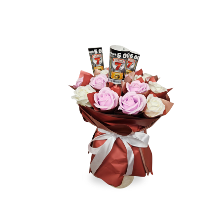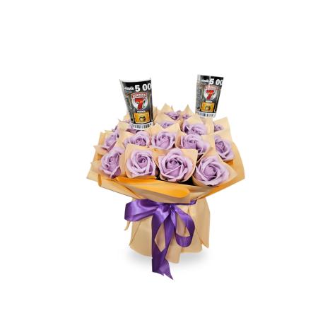 Prabangi muilo rožių puokštė "Violetinė -kreminė" su loterijos bilietais (2 vnt.)
